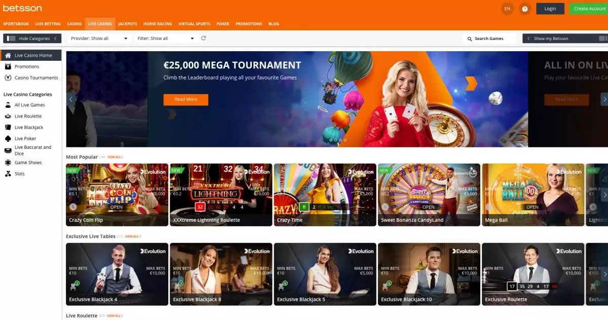 Betsson Casino ofrece una experiencia de casino en vivo impresionante. Los jugadores pueden disfrutar de juegos como blackjack, ruleta y baccarat con crupieres reales. Esta experiencia en tiempo real hace que te sientas como si estuvieras en un casino físico.